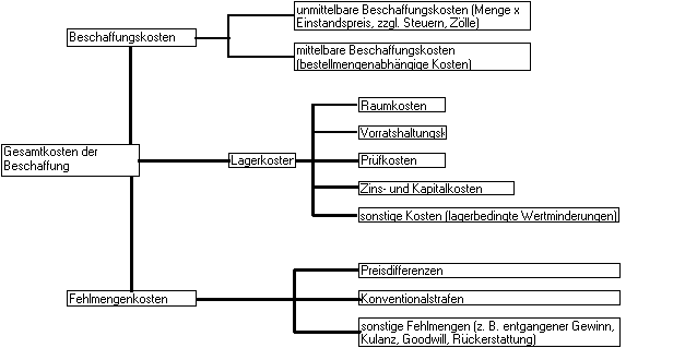 | Kostenminimierung | Senkung der Beschaffungs-, Lagerhaltungs-, Zins- und Fehlmengenkosten |