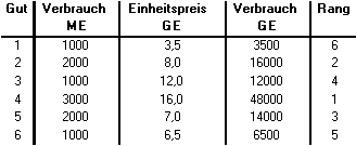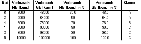 und ordnet Ihnen nach "Verbrauch GE" einen Rang zu, und erstellt dann nach dieser Rangfolge eine neue Tabelle: